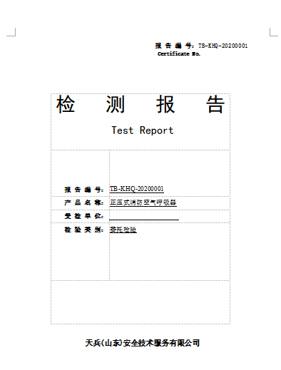 当空气呼吸器整套检测时会包括空气呼吸器气瓶检测和空气呼吸器背板检测,所以此时会出具两份检测报告,因为气瓶和背板检测应当应用两个不同的空气呼吸器检测资质、参照两个检测标准来做所以是两份报告,那么空气呼吸器检测报告的格式又是什么样的呢?