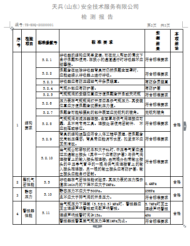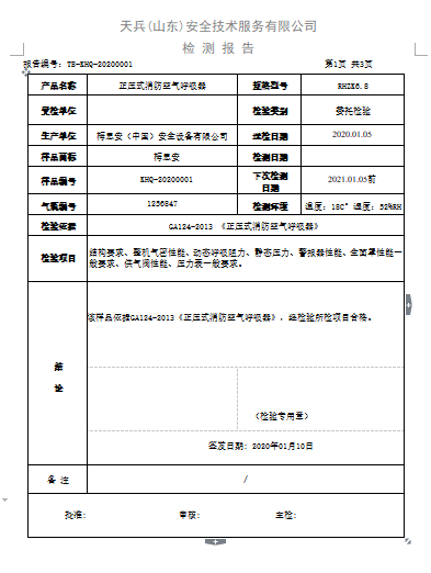 各公司的空气呼吸器检测报告模板可能会有所不同,但大致内容都会包括。